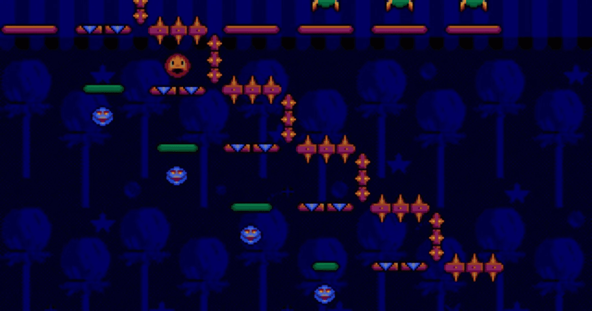 Bumpy is an action-puzzle game. Easy game principle, the typical “steer a jumping ball through obstacle-filled rooms while collecting stuff” game with some nice twists. Very easy at first, gets more difficult and complicated in later levels.