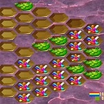 Hexxagon is an addictive and abstract strategy board gameboard game that involves play by two parties on a hexagonal grid. The two parties attempt to control the majority of spaces on a customizable board by spreading, jumping and infecting. Spreading involves adding a new piece adjacent to an existing one. Jumping means moving a piece two spaces away. Whenever a piece is placed adjacent to opposing pieces these are infected, meaning replaced with friendly ones.